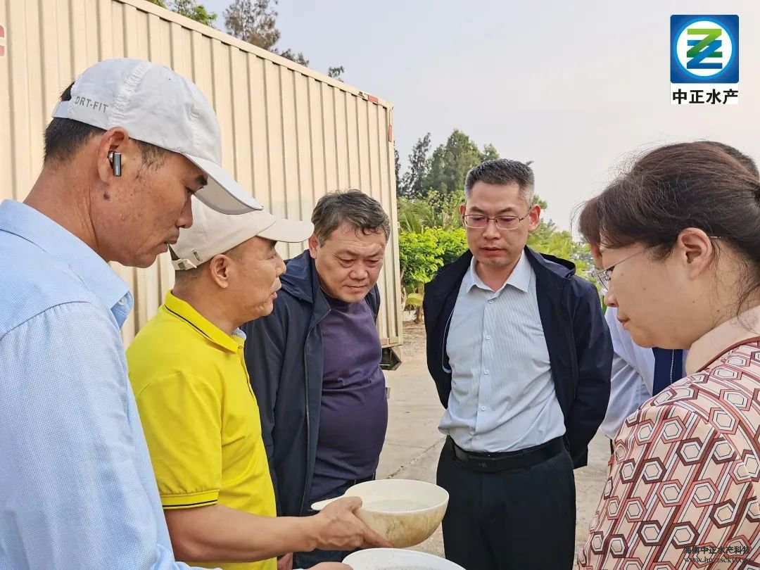 考察團在董事長雷夏雨、生產部副總經理宋永強的陪同下參觀了中正榮譽墻、生物餌料車間、親蝦車間、水處理系統等。考察團在參觀過程中認真聽取了生產副總宋永強的詳細介紹,通過交流與探討,為公司提出了寶貴指導意見。